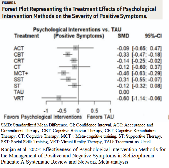 Ranjan et al. 2025: Effectiveness of Psychological Intervention Methods for the Management of Positive and Negative Symptoms in Schizophrenia Patients: A Systematic Review and Network Meta-analysis. “Psychotherapies were found to be more effective compared to TAU”.