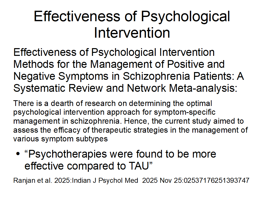CBT was significantly superior to treatment as usual (TAU) for the outcome “overall symptoms” (Bighelli et al. 2018) see WHO 2023 (mhGAP) guideline