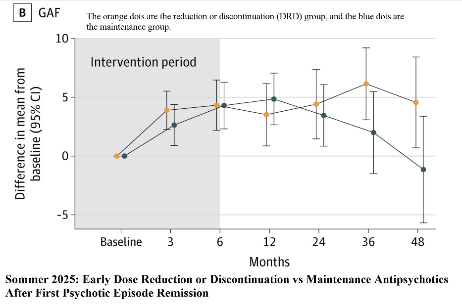 Sommer et al. 2025: Early Dose Reduction or Discontinuation vs Maintenance Antipsychotics After First Psychotic Episode RemissionA Randomi zed Clinical Trial. https://jamanetwork.com/journals/jamapsychiatry/fullarticle/2839607
